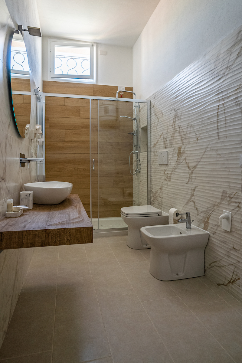 Abbiamo progettato il bagno pensando alle esigenze dei viaggiatori destinandogli uno spazio importante e tutte le dotazioni necessarie